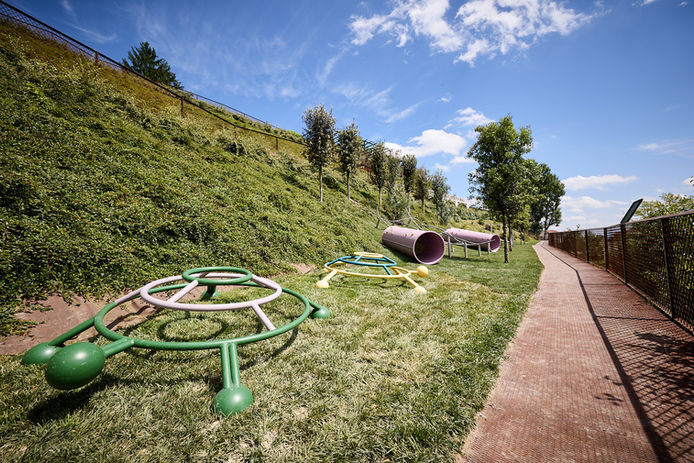 Cherepaha è una scultura di Sanya Kantarovsky realizzata per Letdown, la mostra personale che la Fondazione Sandretto Re Rebaudengo gli ha dedicato nel novembre 2017 nella sede di Torino. In quell’occasione, l’artista, nato a Mosca ed emigrato da bambino negli Stati Uniti, aveva rievocato la propria infanzia con un ciclo di dipinti su tela e un grande wall painting e con la versione scultorea delle “cherepashki”, le tipiche tartarughe in acciaio presenti nei parchi gioco delle K-7 o Krushevki, le case di edilizia pubblica costruite in Unione Sovietica dagli anni ‘60 ai ‘90 del ‘900. Ricollocata nel Parco d’arte, la scultura si separa da quell’immaginario legato a un’architettura fortemente omologata e standardizzata e riguadagna la versatilità di una struttura-gioco praticabile. Posta accanto a Une machine à jouer di Parasite 2.0, la tartaruga in tubolari d’acciaio colorato è una forma semplice ed essenziale, pronta ad accogliere i gesti e le invenzioni dei bambini e delle bambine in visita al Parco.